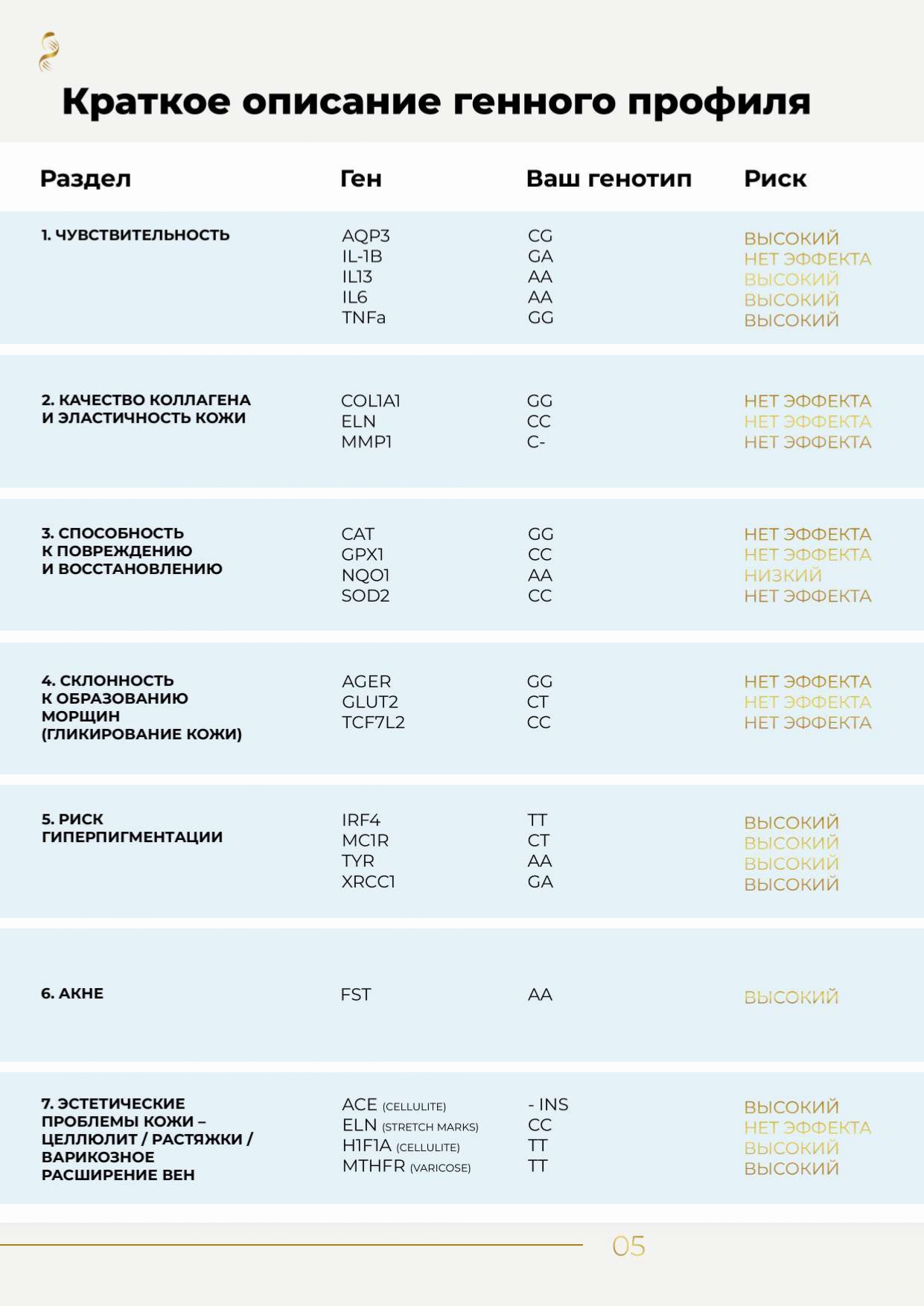 Данные отчета являются персонализированной генетикой и эффективно могут быть использованы только для конкретного человека.